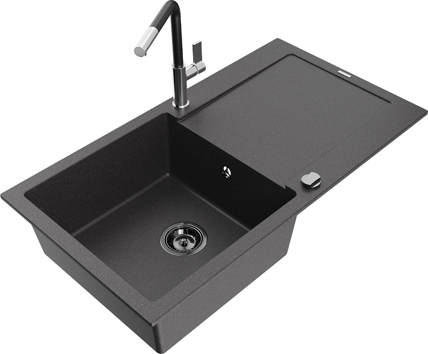 Mexen Leo évier en granit 1 bac avec égouttoir et mitigeur de cuisine Flora, noir moucheté - 6501-76-670401-07-B
