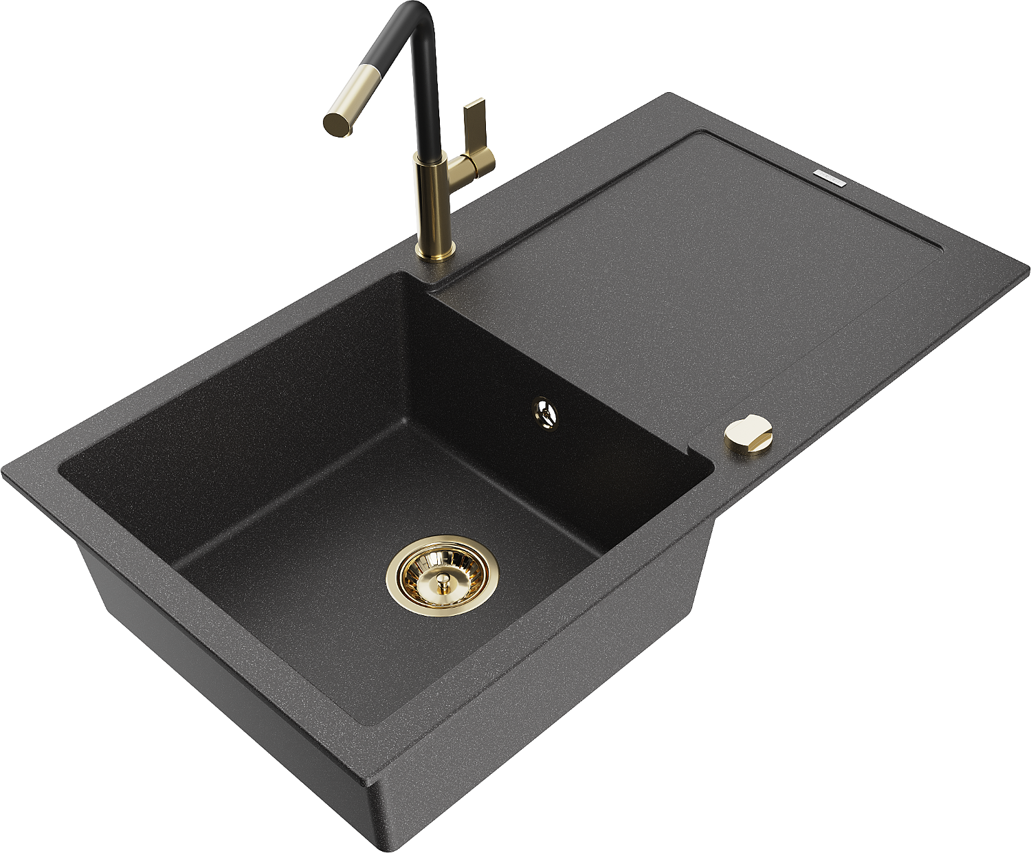 Mexen Leo évier en granit 1 bac avec égouttoir et robinet de cuisine Flora, noir moucheté - 6501-76-670401-57-G