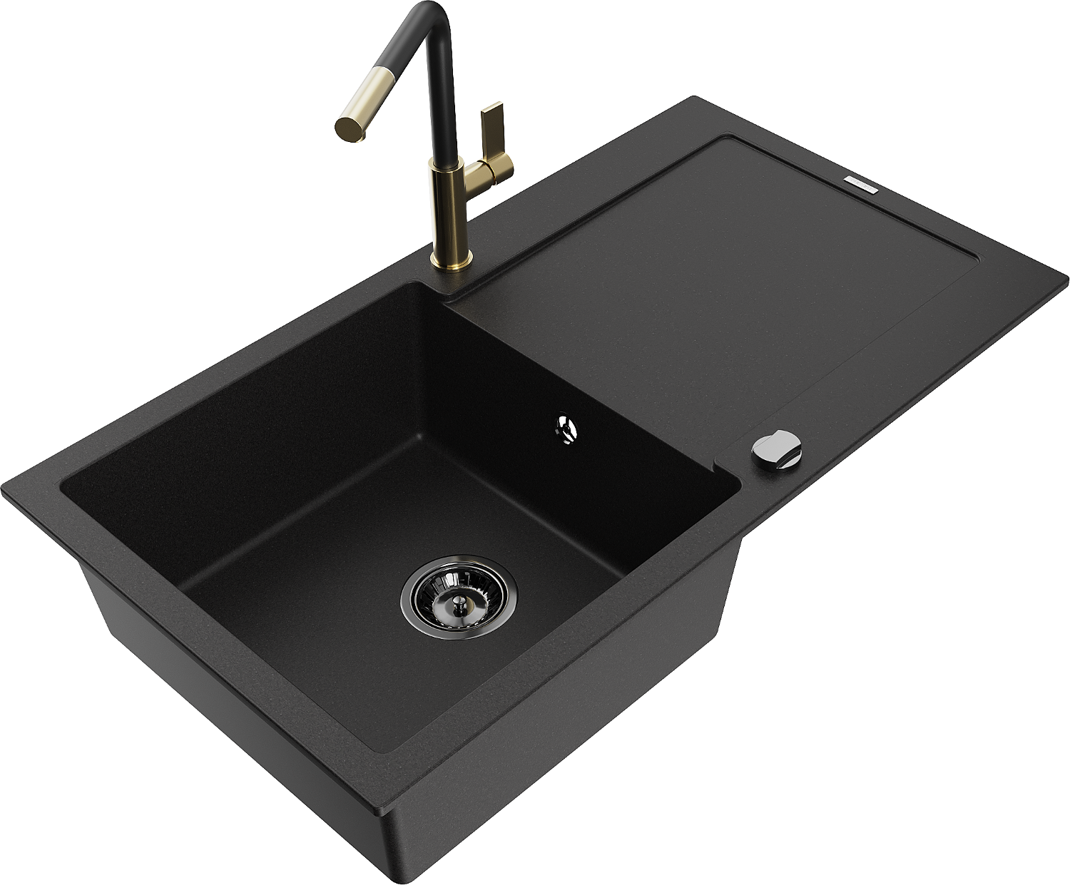 Mexen Leo évier de cuisine en granite 1 bac avec égouttoir et robinet de cuisine Flora, noir - 6501-77-670401-57-B