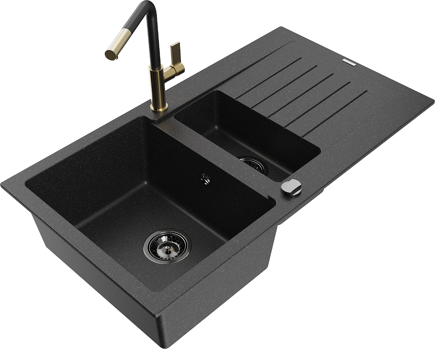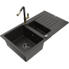 Mexen Matias évier en granit 1,5 bac avec égouttoir et robinet de cuisine Flora, noir/argent - 6502-73-670401-57-B
