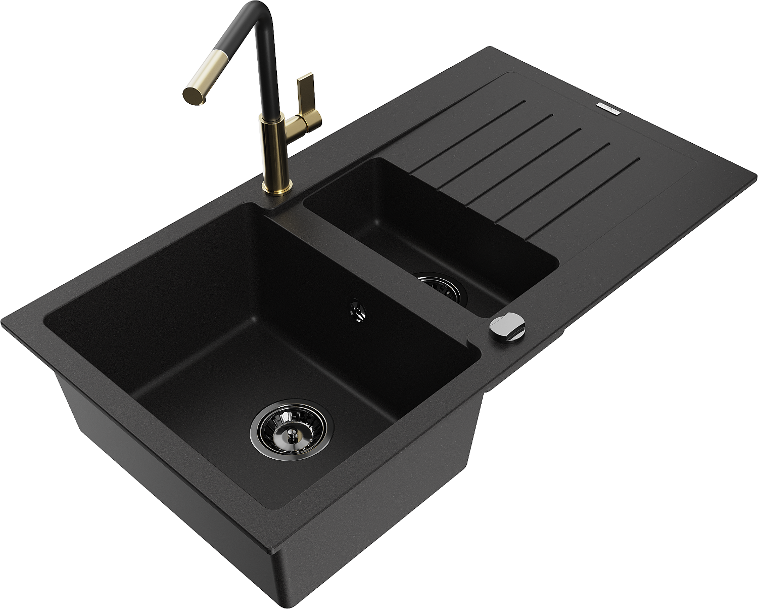 Mexen Matias évier en granit 1,5 bac avec égouttoir et robinet de cuisine Flora, noir - 6502-77-670401-57-B