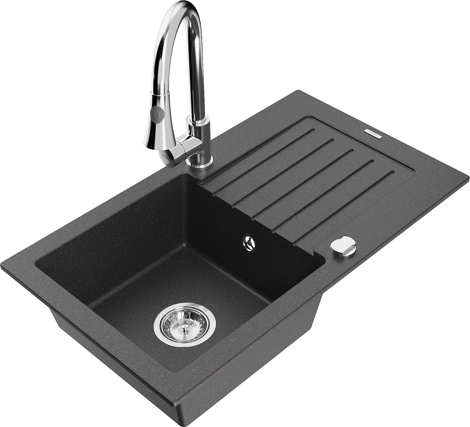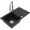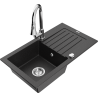 Mexen Pablo évier en granit 1 bac avec égouttoir et robinet de cuisine Elia, noir moucheté - 6510-76-670101-00