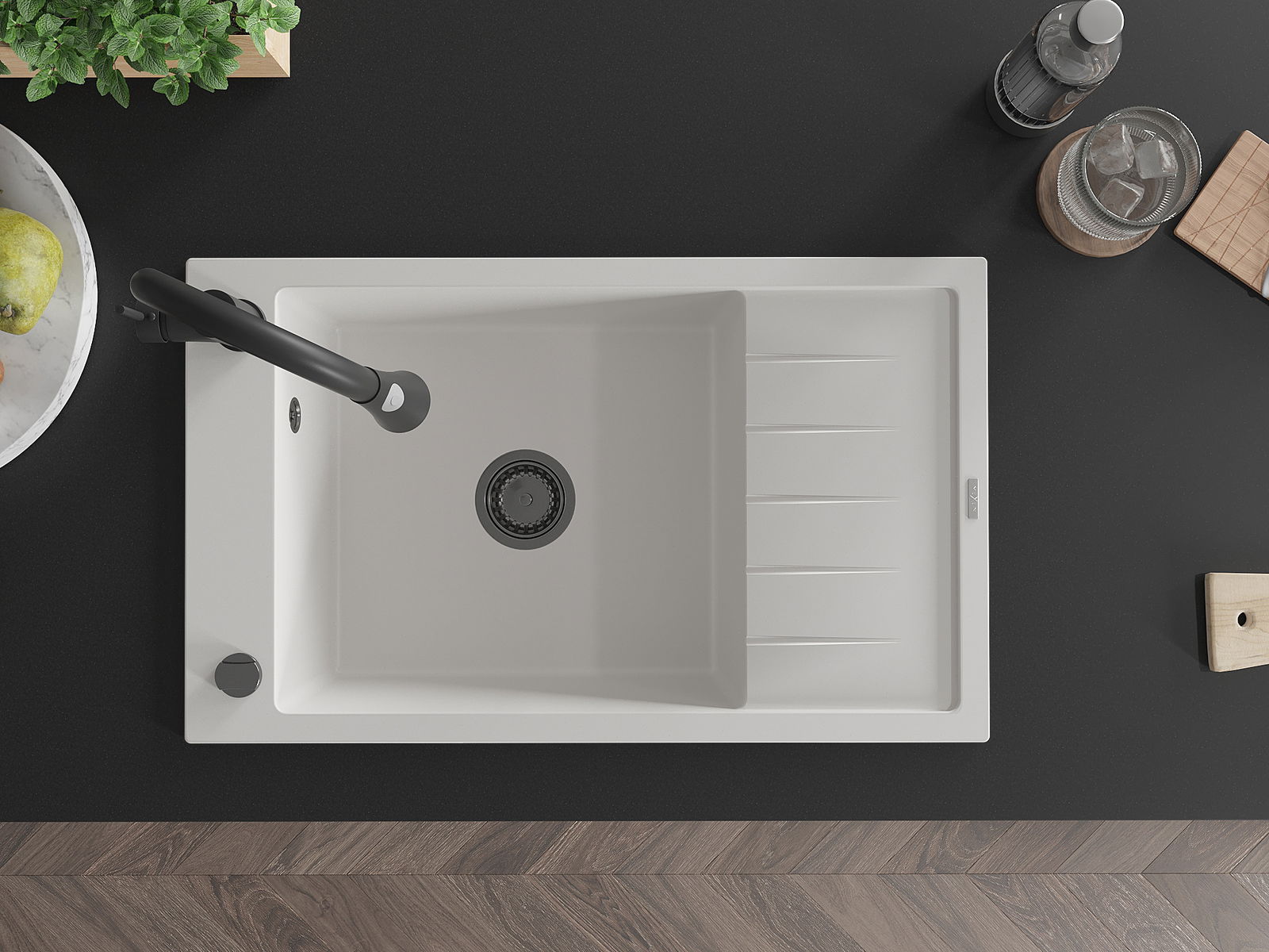 La surface de l'évier est très bien durcie, elle se distingue par une résistance exceptionnelle aux dommages mécaniques et aux rayures. Le matériau durable de fabrication permet de profiter de l'apparence de l'évier pendant de nombreuses années d'utilisation.