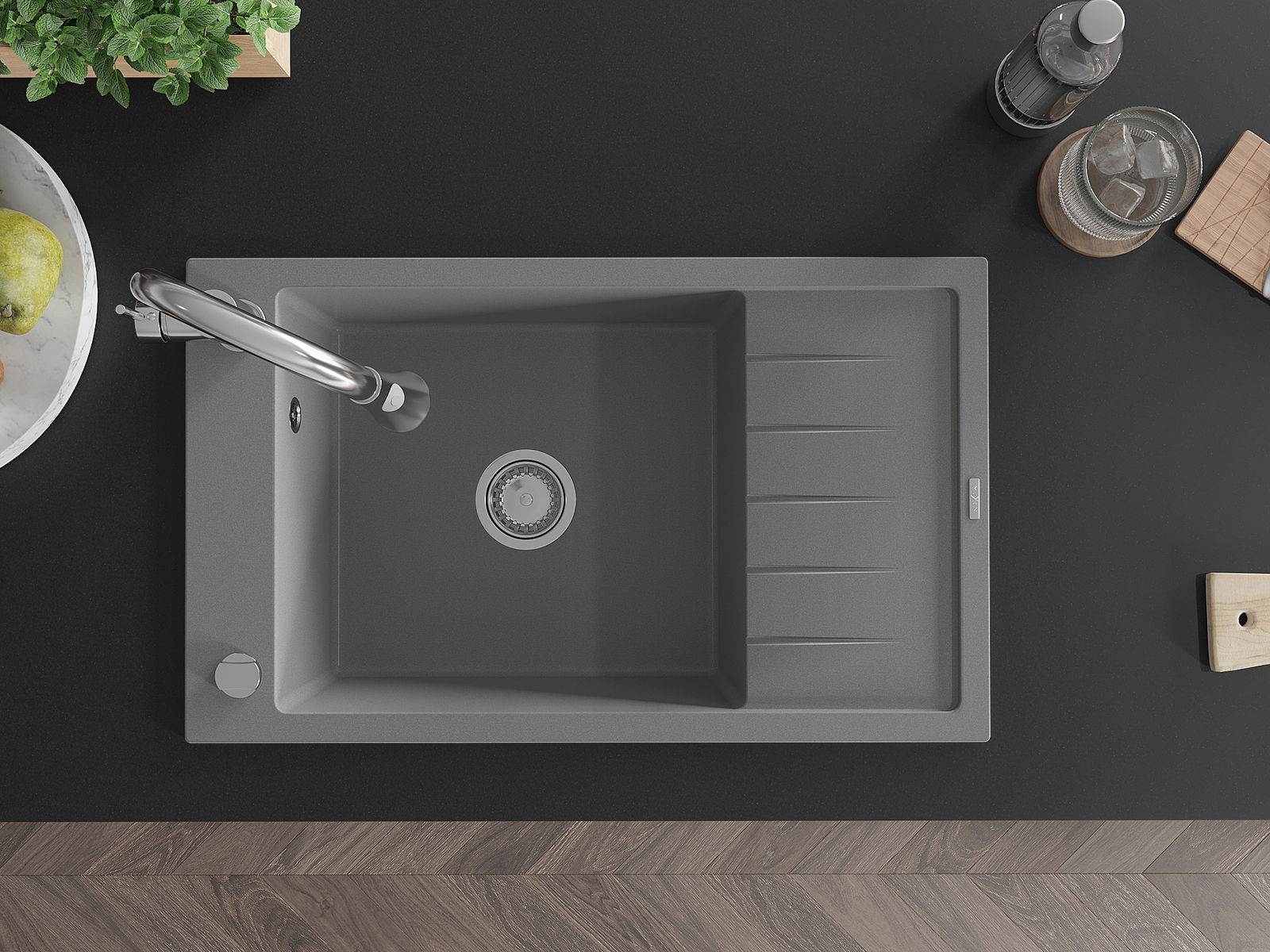 La surface de l'évier est très bien durcie, elle se distingue par une résistance exceptionnelle aux dommages mécaniques et aux rayures. Le matériau durable de fabrication permet de profiter de l'apparence de l'évier pendant de nombreuses années d'utilisation.