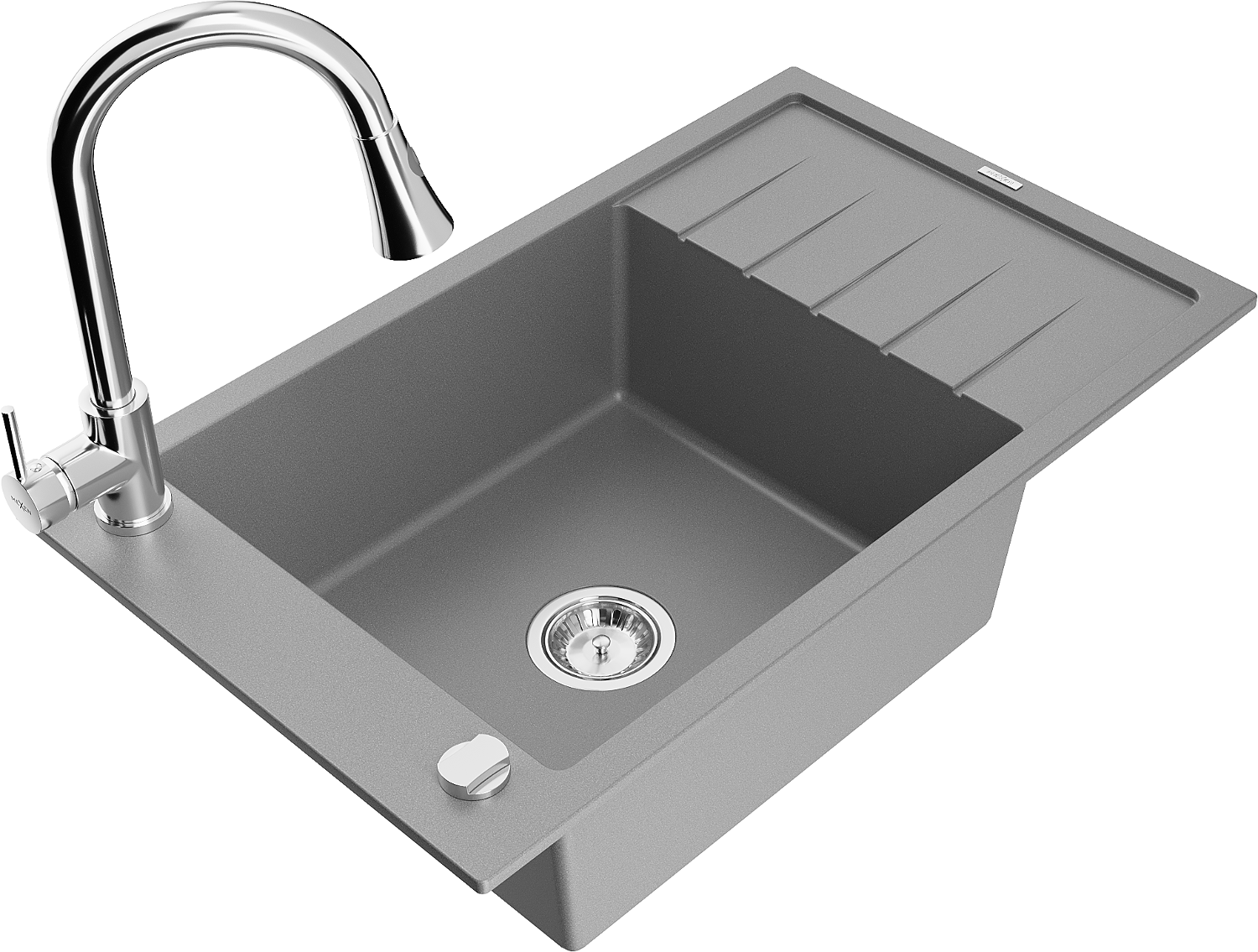 Mexen Elias évier en granit 1 cuve avec égouttoir et robinet de cuisine Elia, gris - 6511-71-670101-00