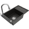 Mexen Elias évier en granit 1 bac avec égouttoir et robinet de cuisine Elia, noir moucheté - 6511-76-670101-00