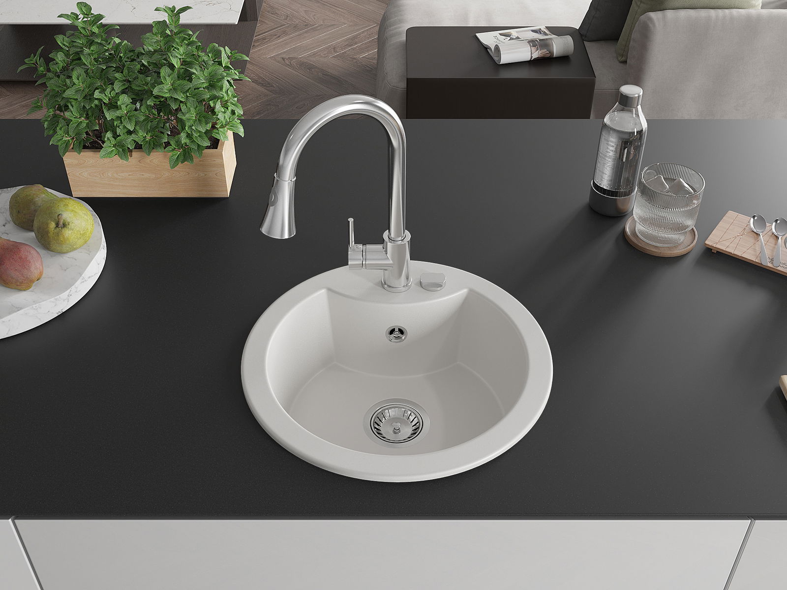 L'évier a été fabriqué en granit de haute qualité. Il constitue un complément élégant et surtout pratique à toute cuisine, quel que soit son style. La haute qualité et la durabilité du granit garantissent une utilisation pendant de nombreuses années.