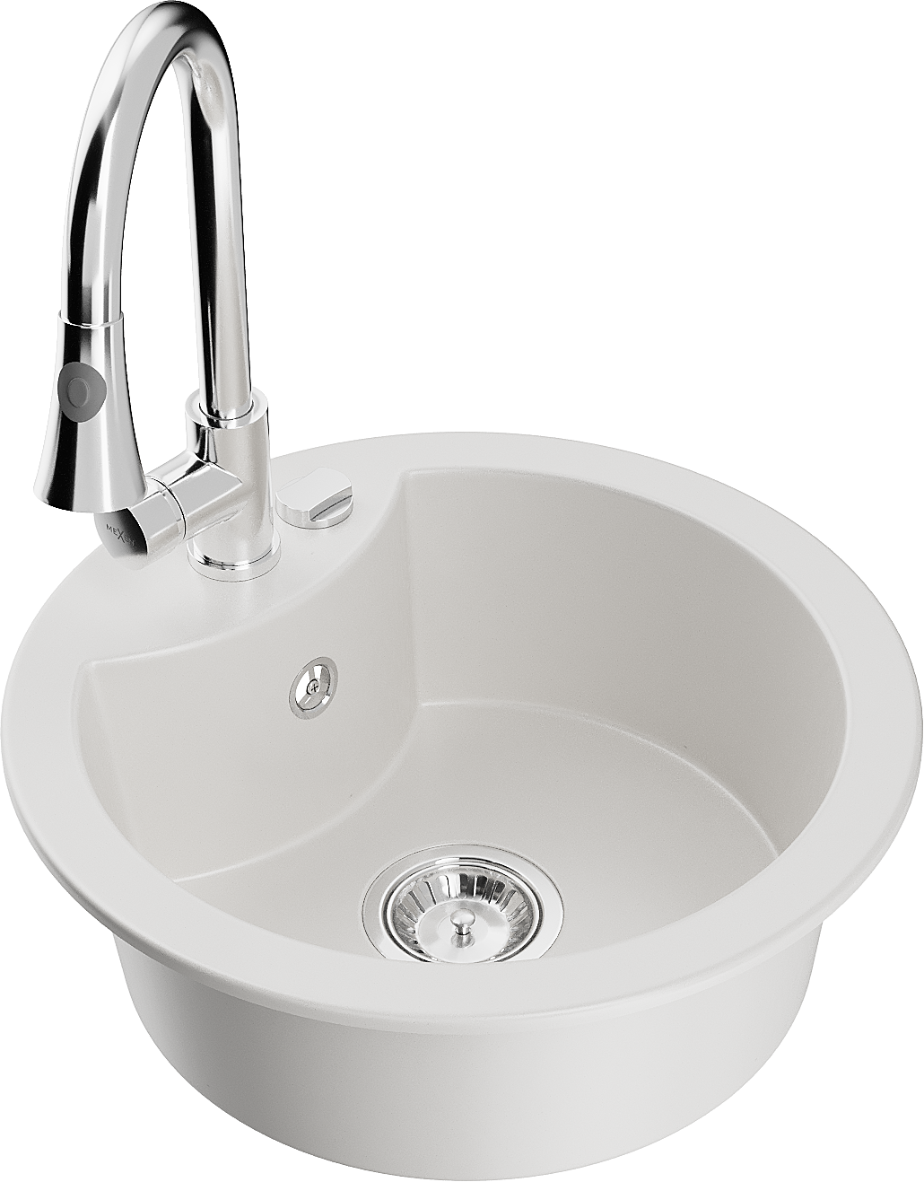 Mexen Diego évier en granit 1 bac avec robinet de cuisine Elia, blanc - 6512-20-670101-00
