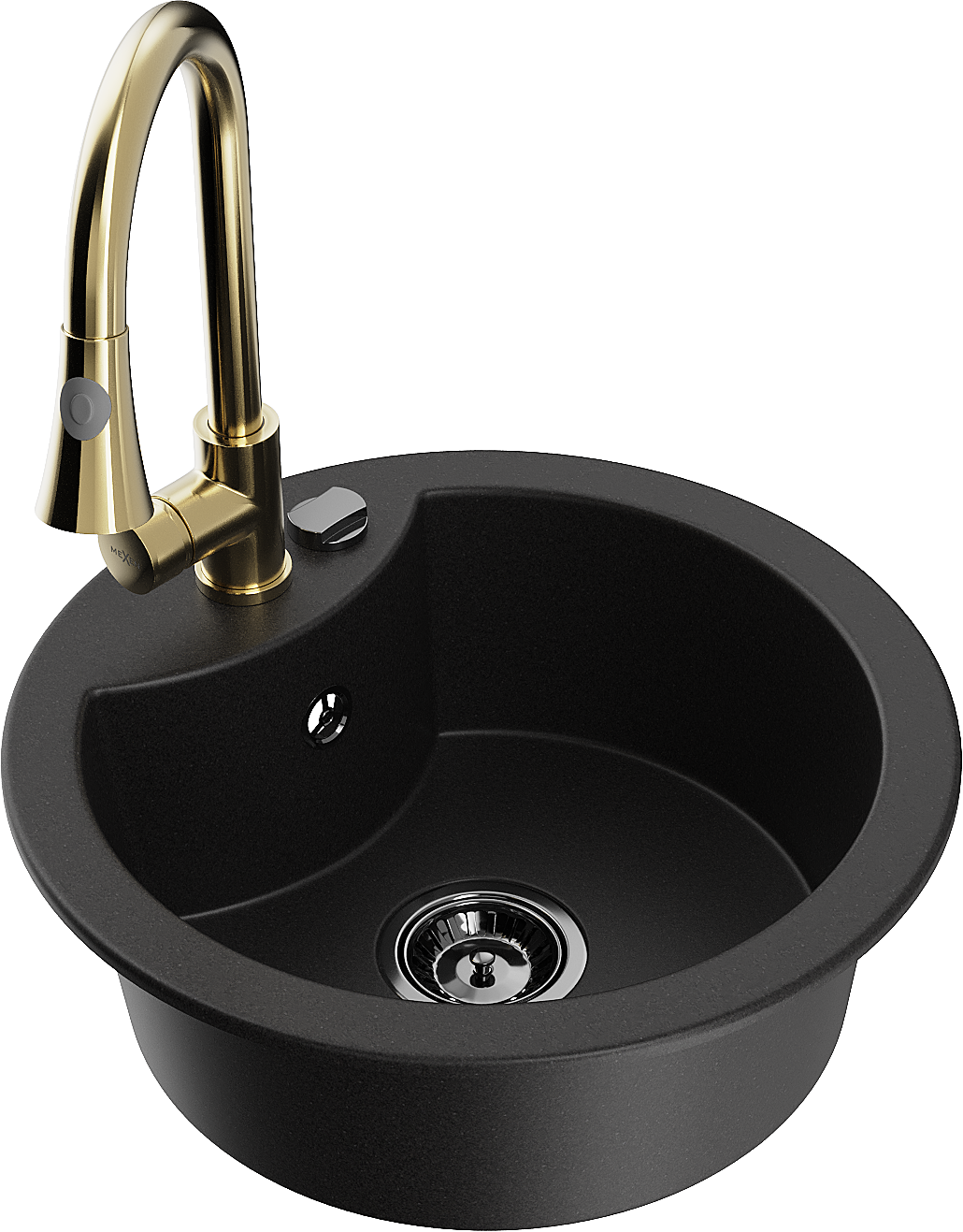Mexen Diego évier en granit à 1 bac avec robinet de cuisine Elia, noir - 6512-77-670101-50-B