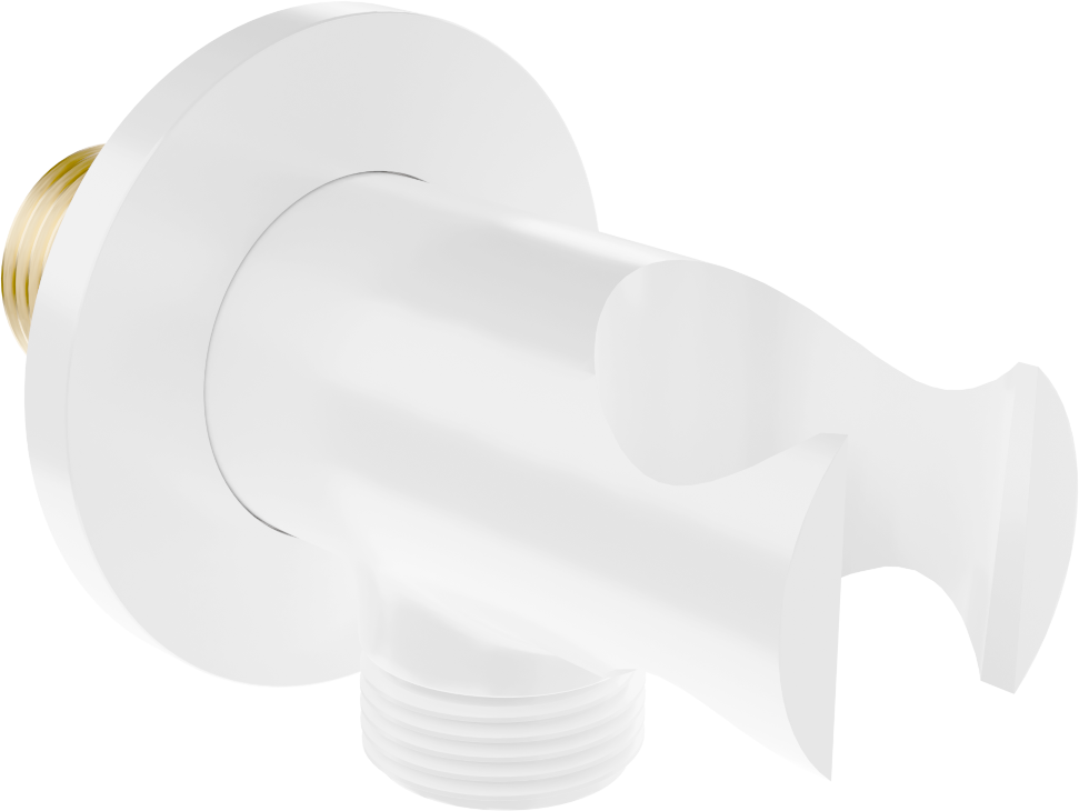 Le raccord coudé est équipé d'un support pour pommeau de douche. C'est une solution pratique et confortable qui permet d'économiser de l'espace et facilite l'utilisation quotidienne grâce à un accès rapide au pommeau de douche.