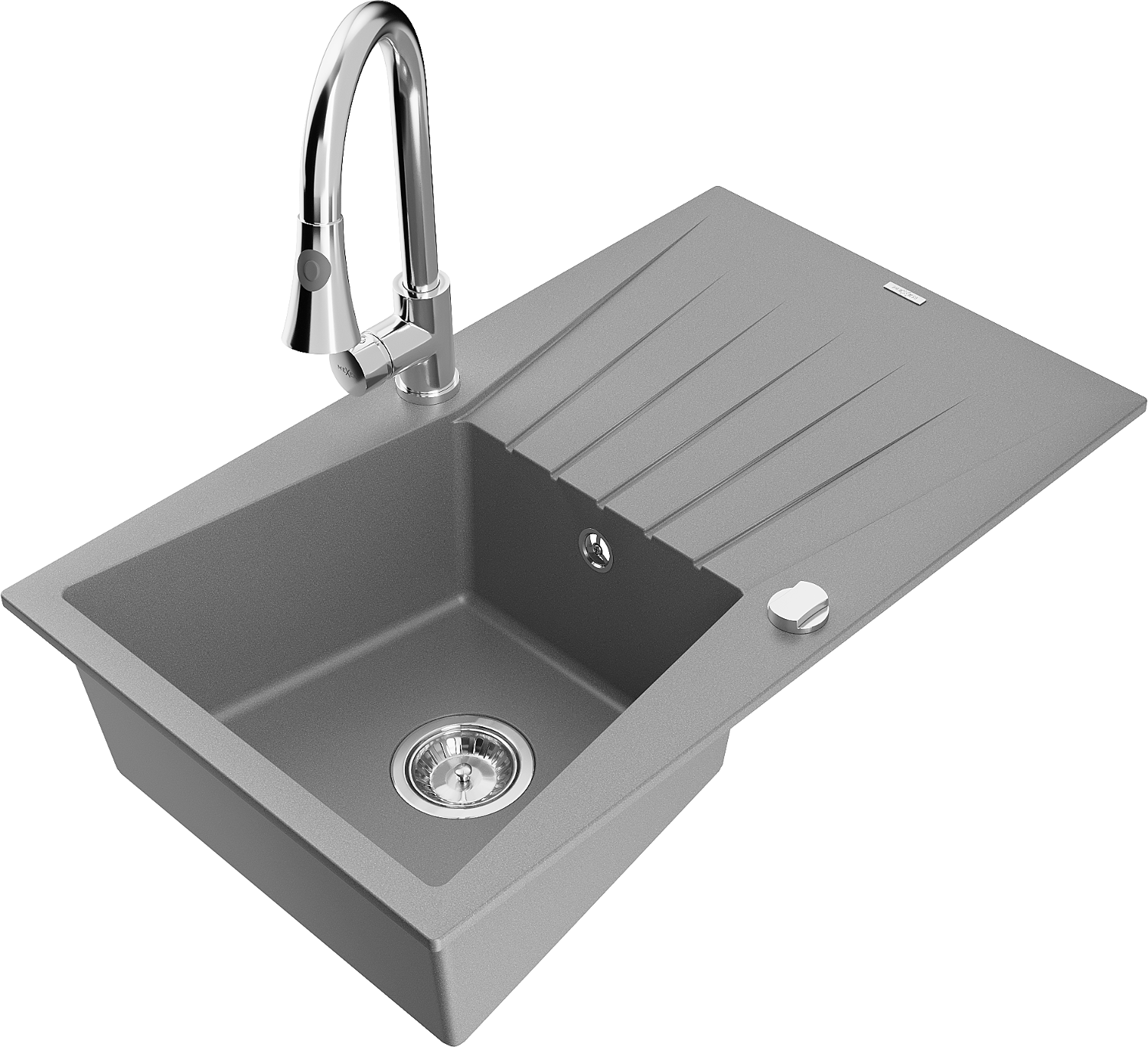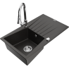 Mexen Cesar évier de cuisine en granit 1 bac avec égouttoir et robinet de cuisine Elia, gris - 6514-71-670101-00