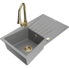 Mexen Cesar évier en granit 1 bac avec égouttoir et robinet de cuisine Elia, noir/or métallique - 6514-75-670101-50