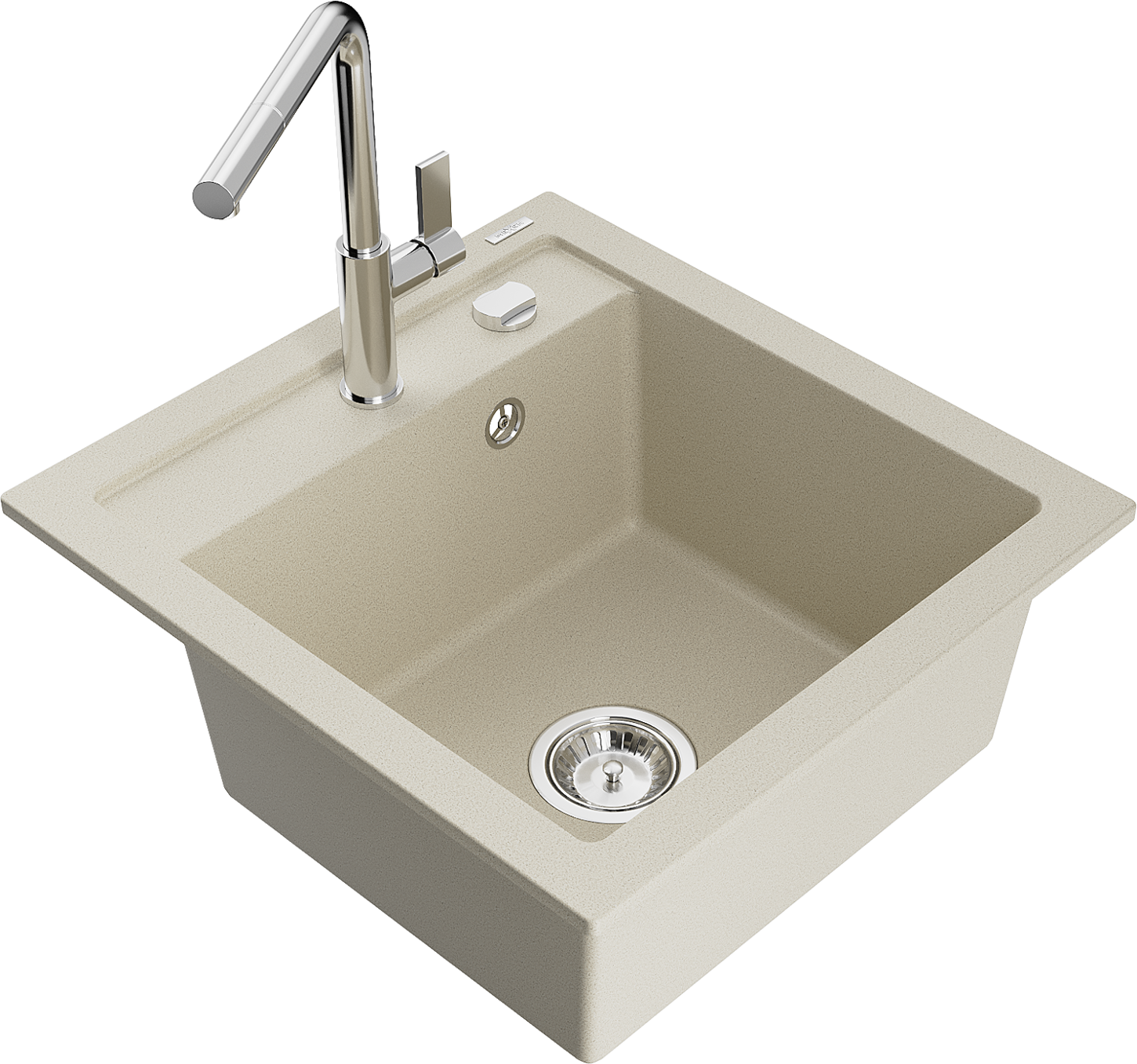 Mexen Vito évier en granit 1 bac avec robinet de cuisine Flora, beige - 6503-69-670401-00