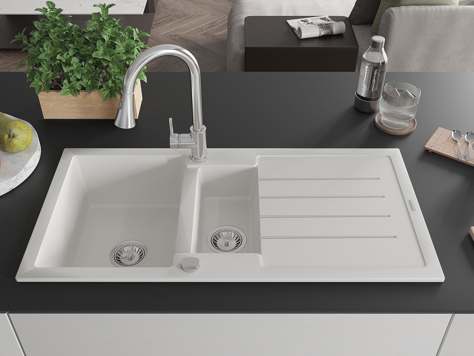 L'évier se distingue par une résistance exceptionnelle aux hautes températures et à leurs changements soudains, ce qui évite toute déformation même sous l'effet prolongé de l'eau chaude.