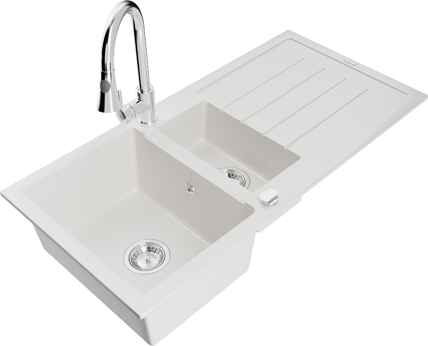 Mexen Andres évier en granit 1,5 bac avec égouttoir et robinet de cuisine Elia, blanc - 6515-20-670101-00