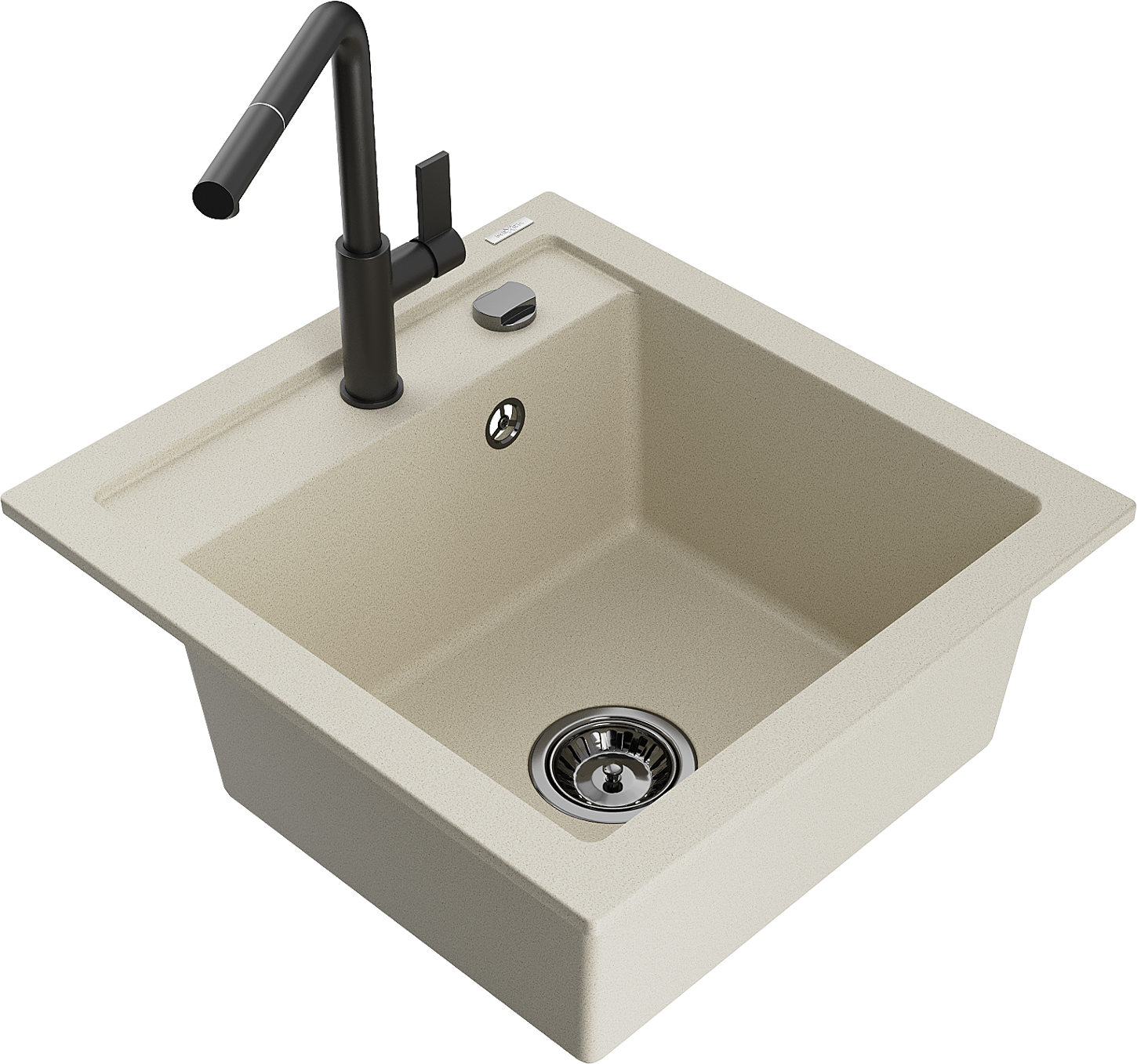 Mexen Vito évier en granit 1 bac avec robinet de cuisine Flora, beige - 6503-69-670401-70-B
