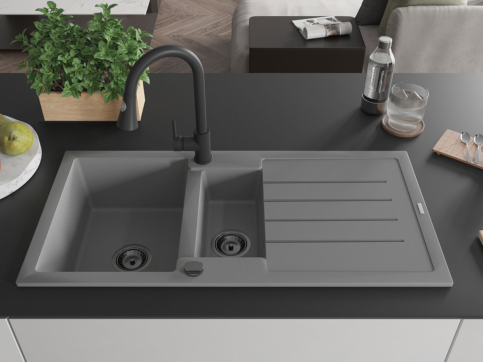 La surface de l'évier est très bien durcie, elle se distingue par une résistance exceptionnelle aux dommages mécaniques et aux rayures. Le matériau durable de fabrication permet de profiter de l'apparence de l'évier pendant de nombreuses années d'utilisation.