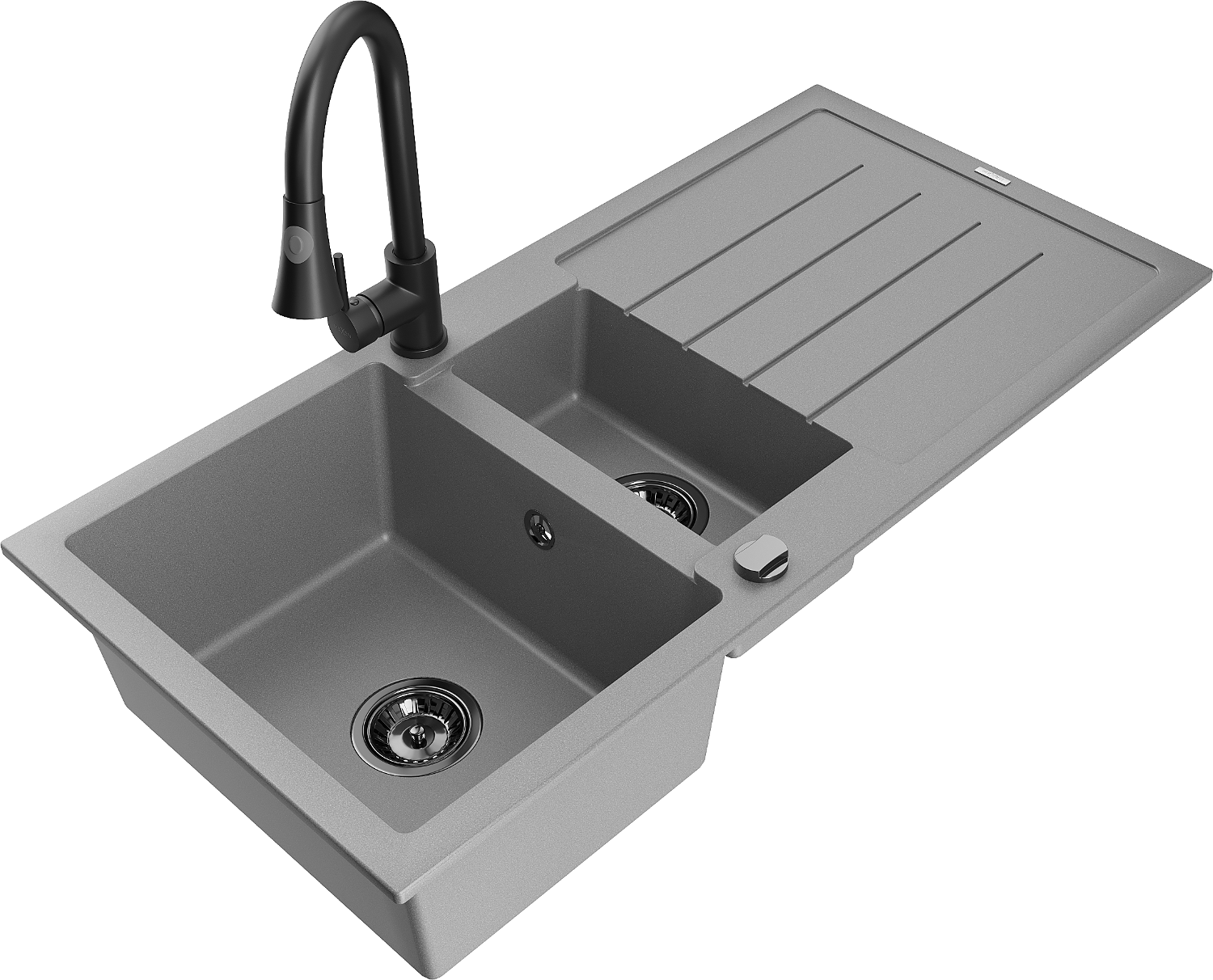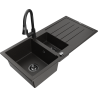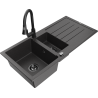 Mexen Andres évier en granit 1,5 bac avec égouttoir et robinet de cuisine Elia, gris - 6515-71-670101-70-B