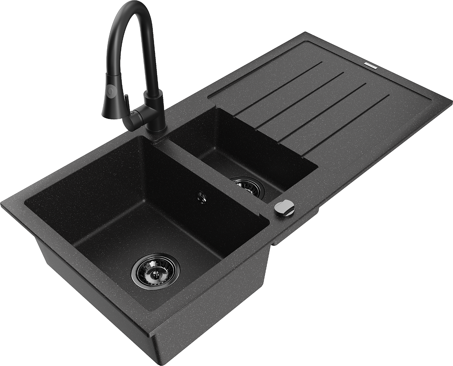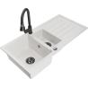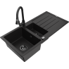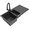 Mexen Andres évier en granit 1,5 bac avec égouttoir et robinet de cuisine Elia, noir/argent - 6515-73-670101-70-B