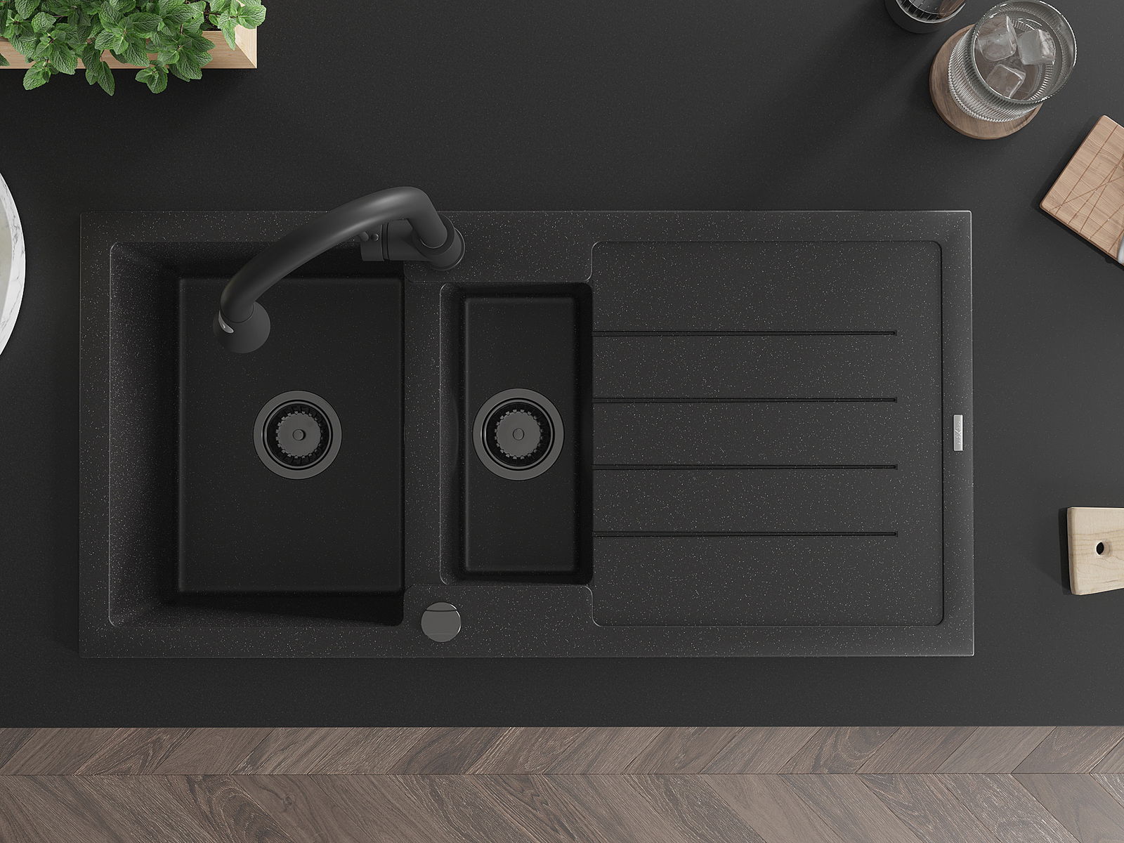 La surface de l'évier est très bien durcie, elle se distingue par une résistance exceptionnelle aux dommages mécaniques et aux rayures. Le matériau durable de fabrication permet de profiter de l'apparence de l'évier pendant de nombreuses années d'utilisation.