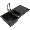 Mexen Andres évier en granit 1,5 bac avec égouttoir et robinet de cuisine Elia, noir/doré métallisé - 6515-75-670101-50-B
