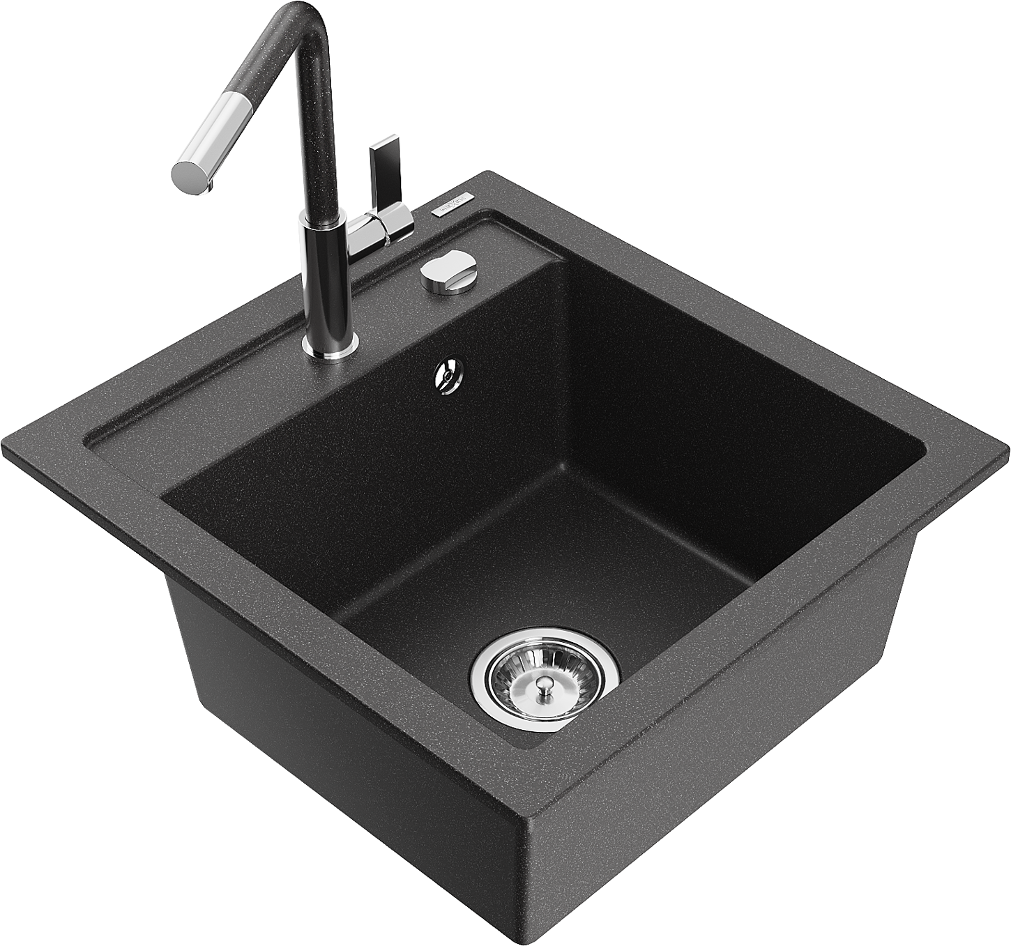 Mexen Vito évier en granit à 1 bac avec robinet de cuisine Flora, noir moucheté - 6503-76-670401-08