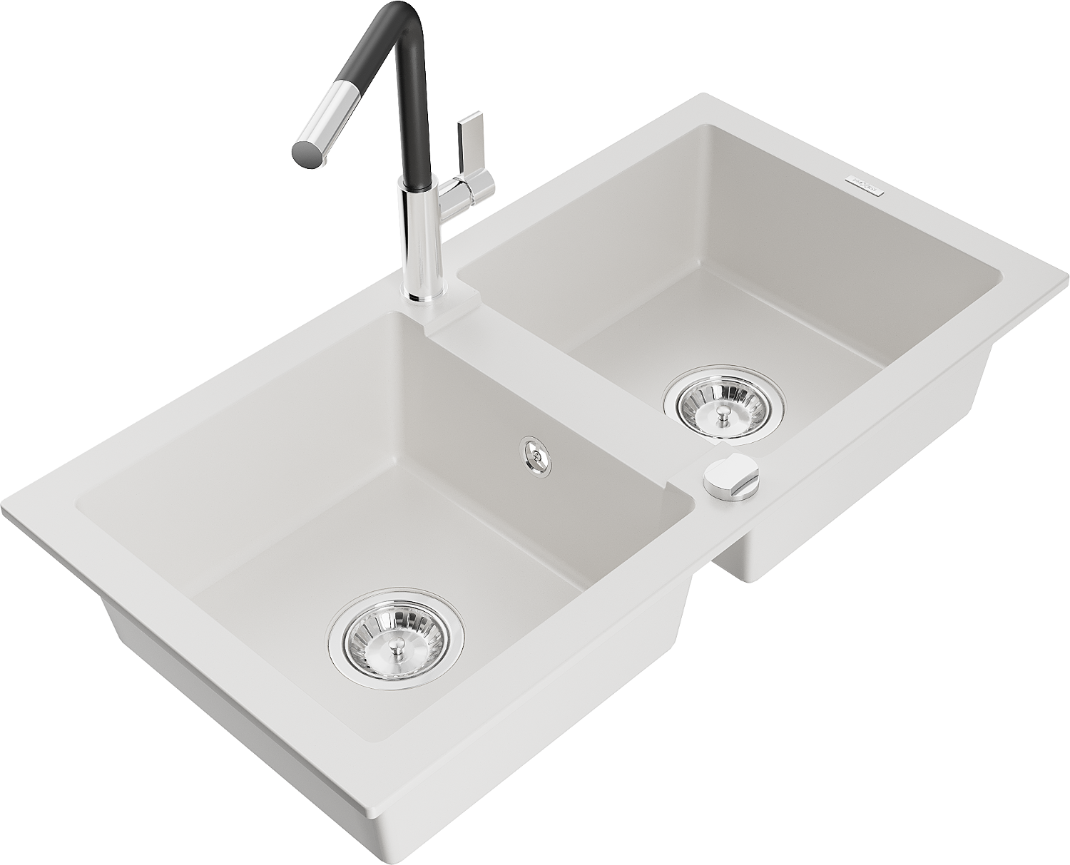Mexen Mario évier en granit à 2 bacs avec robinet de cuisine Flora, blanc - 6504-20-670401-07
