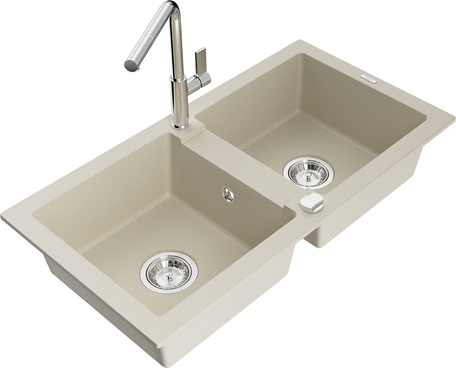 Mexen Mario évier en granit à 2 bacs avec robinet de cuisine Flora, beige - 6504-69-670401-00