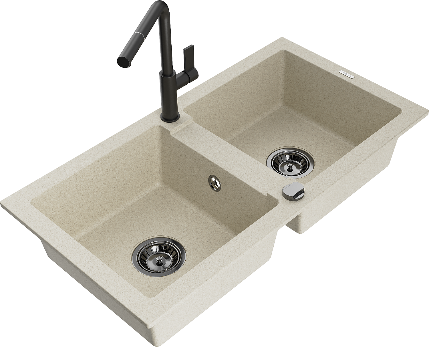 Mexen Mario évier en granit à 2 bacs avec robinet de cuisine Flora, beige - 6504-69-670401-70-B