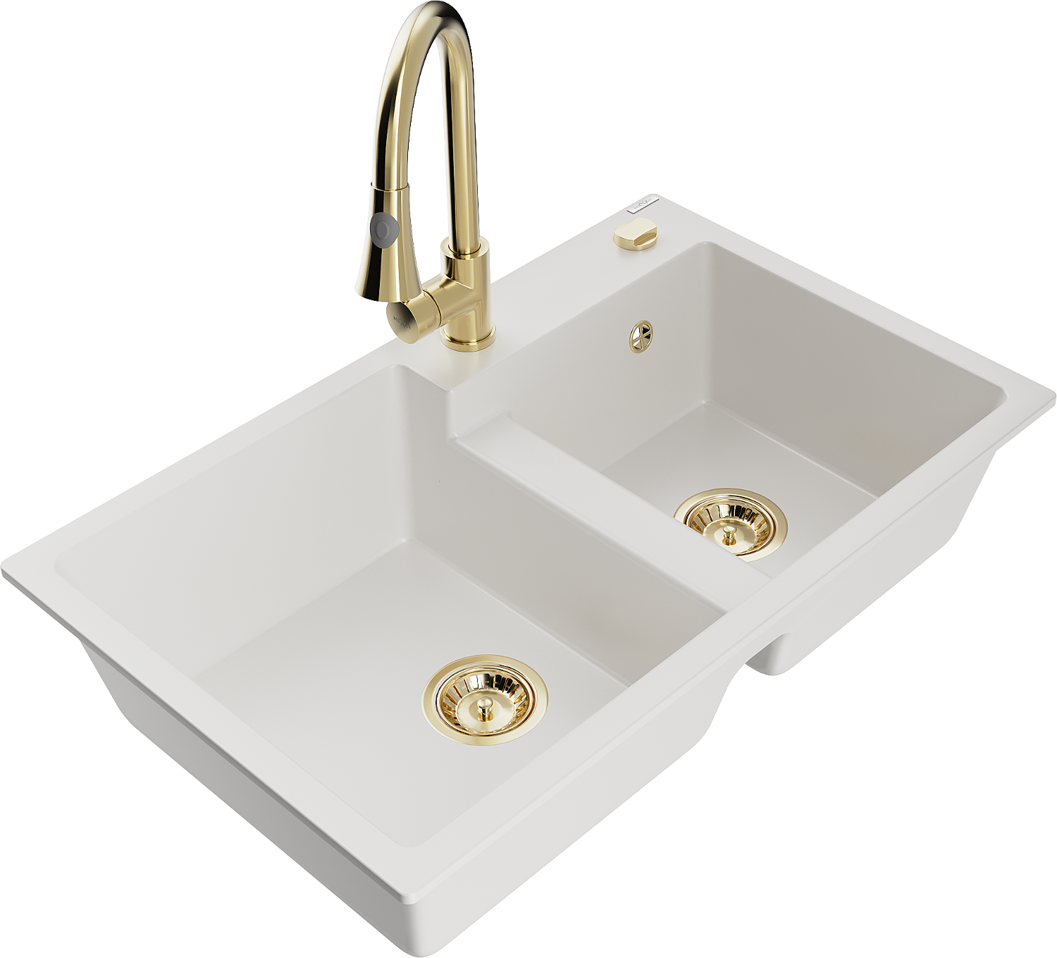 Mexen Tomas évier en granit à 2 bacs avec robinet de cuisine Elia, blanc - 6516-20-670101-50