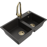 Mexen Tomas évier en granit 2 bacs avec mitigeur de cuisine Elia, beige - 6516-69-670101-50