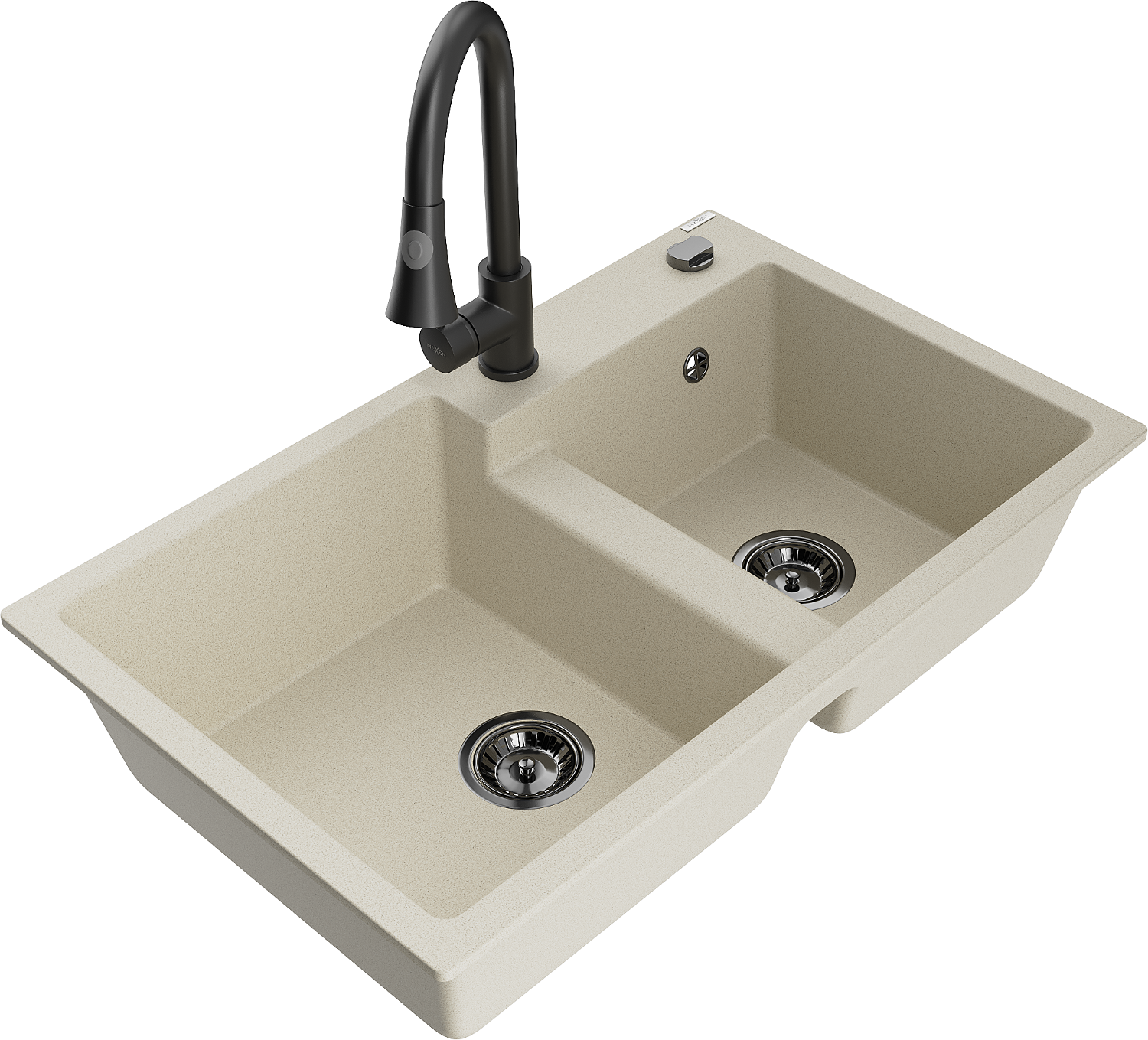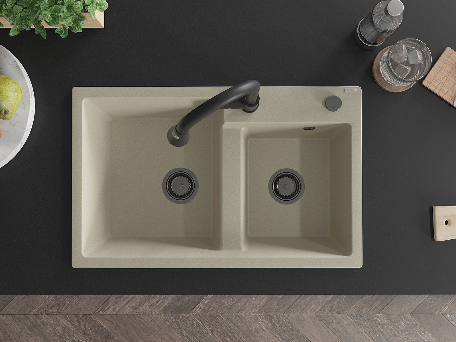 Mexen Tomas évier en granit à 2 bacs avec robinet de cuisine Elia, beige - 6516-69-670101-70