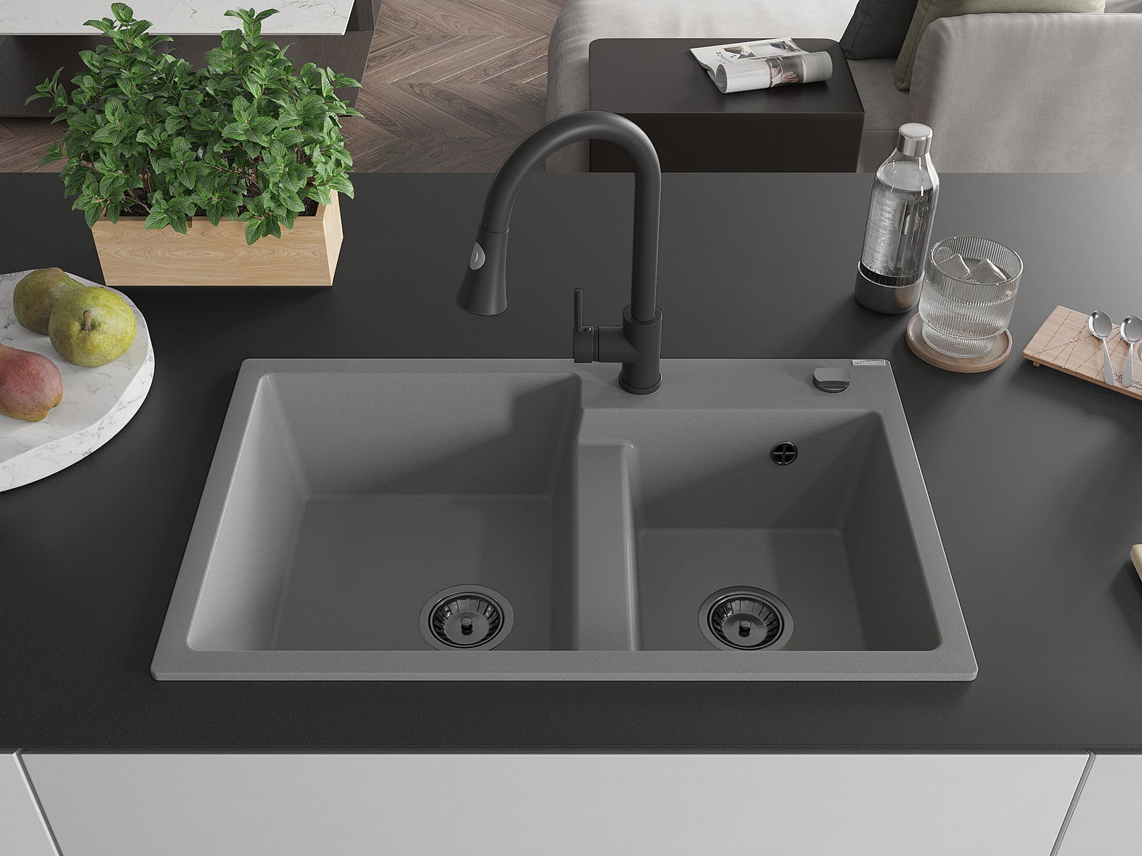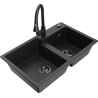 Mexen Tomas évier en granit à 2 bacs avec robinet de cuisine Elia, gris - 6516-71-670101-70-B
