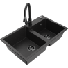 Mexen Tomas évier en granit à 2 bacs avec robinet de cuisine Elia, noir - 6516-77-670101-50-B