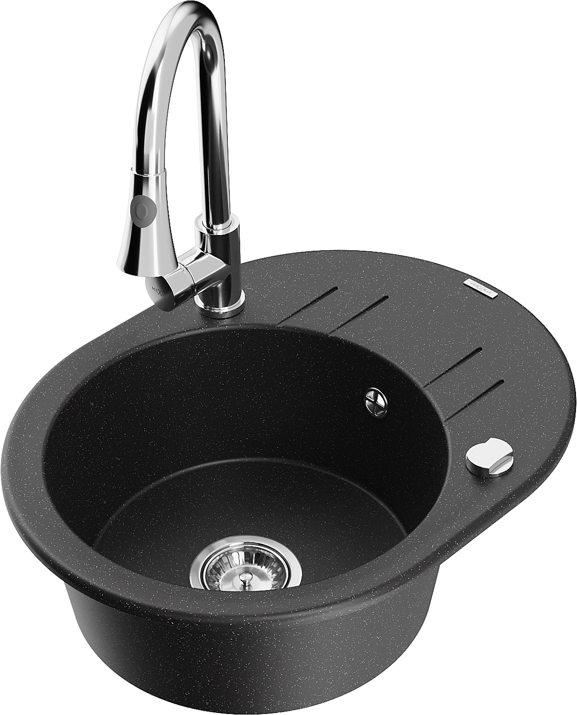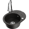 Mexen Kevin évier en granit à 1 bac avec égouttoir et robinet de cuisine Elia, noir/métallisé argent - 6517-73-670101-00
