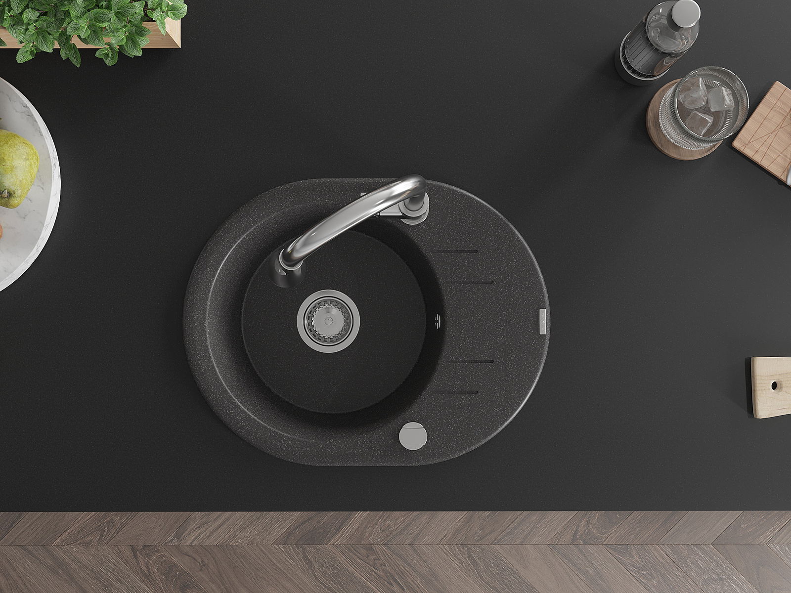 L'évier a été fabriqué en granit de haute qualité. Il constitue un complément élégant et surtout pratique à toute cuisine, quel que soit son style. La haute qualité et la durabilité du granit garantissent une utilisation pendant de nombreuses années.