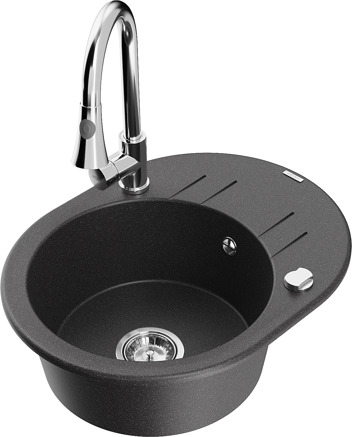 Mexen Kevin évier en granit 1 bac avec égouttoir et mitigeur de cuisine Elia, noir moucheté - 6517-76-670101-00