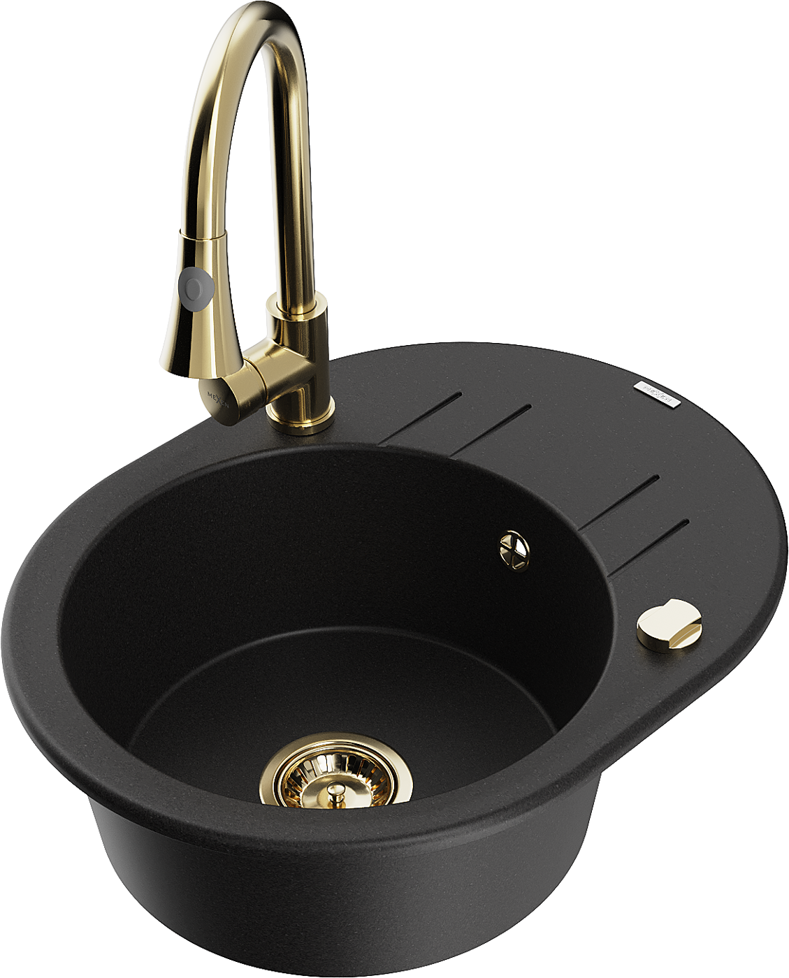 Mexen Kevin évier en granit 1 bac avec égouttoir et robinet de cuisine Elia, noir - 6517-77-670101-50