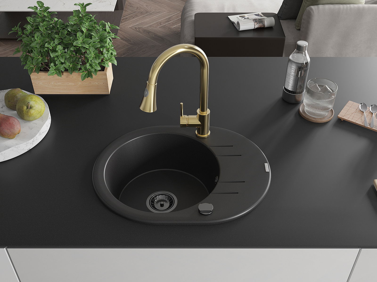 L'évier est fabriqué en granit de haute qualité. Il constitue un complément élégant et surtout pratique pour toute cuisine, quel que soit son style. La qualité et la durabilité du granit garantissent de nombreuses années d'utilisation.