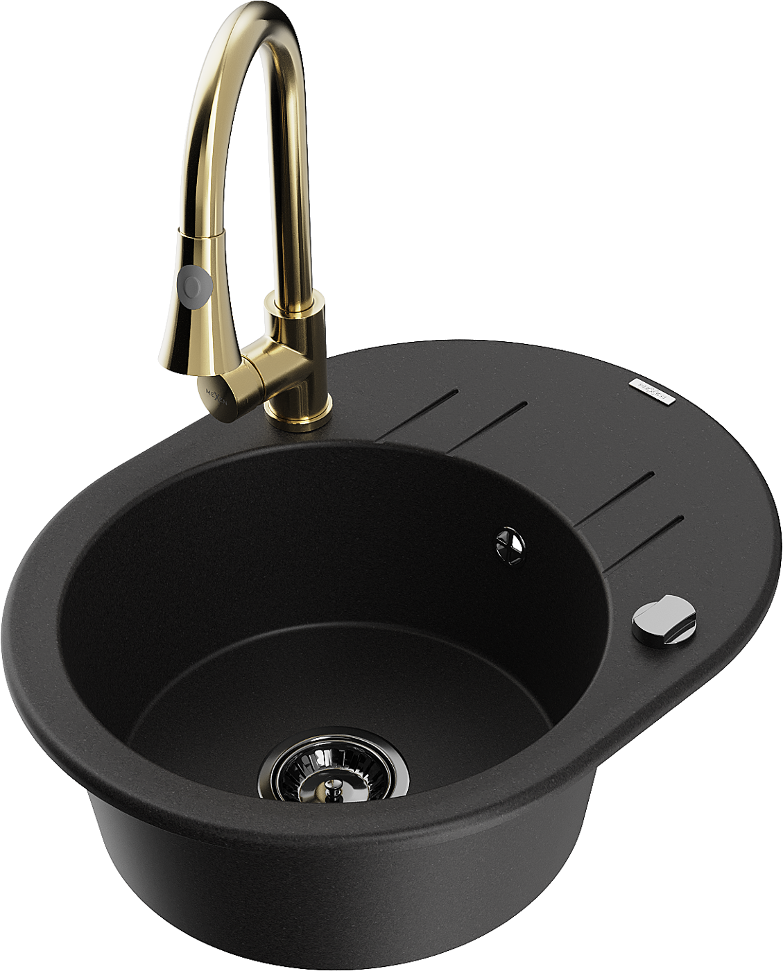 Mexen Kevin évier en granit 1 bac avec égouttoir et robinet de cuisine Elia, noir - 6517-77-670101-50-B