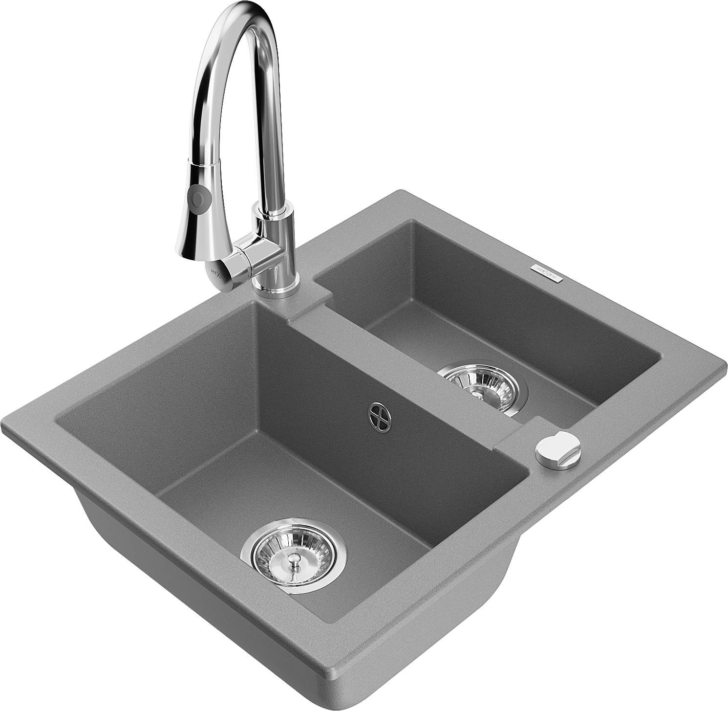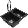 Mexen Carlos évier en granit 1,5-bac avec robinet de cuisine Elia, gris - 6518-71-670101-00