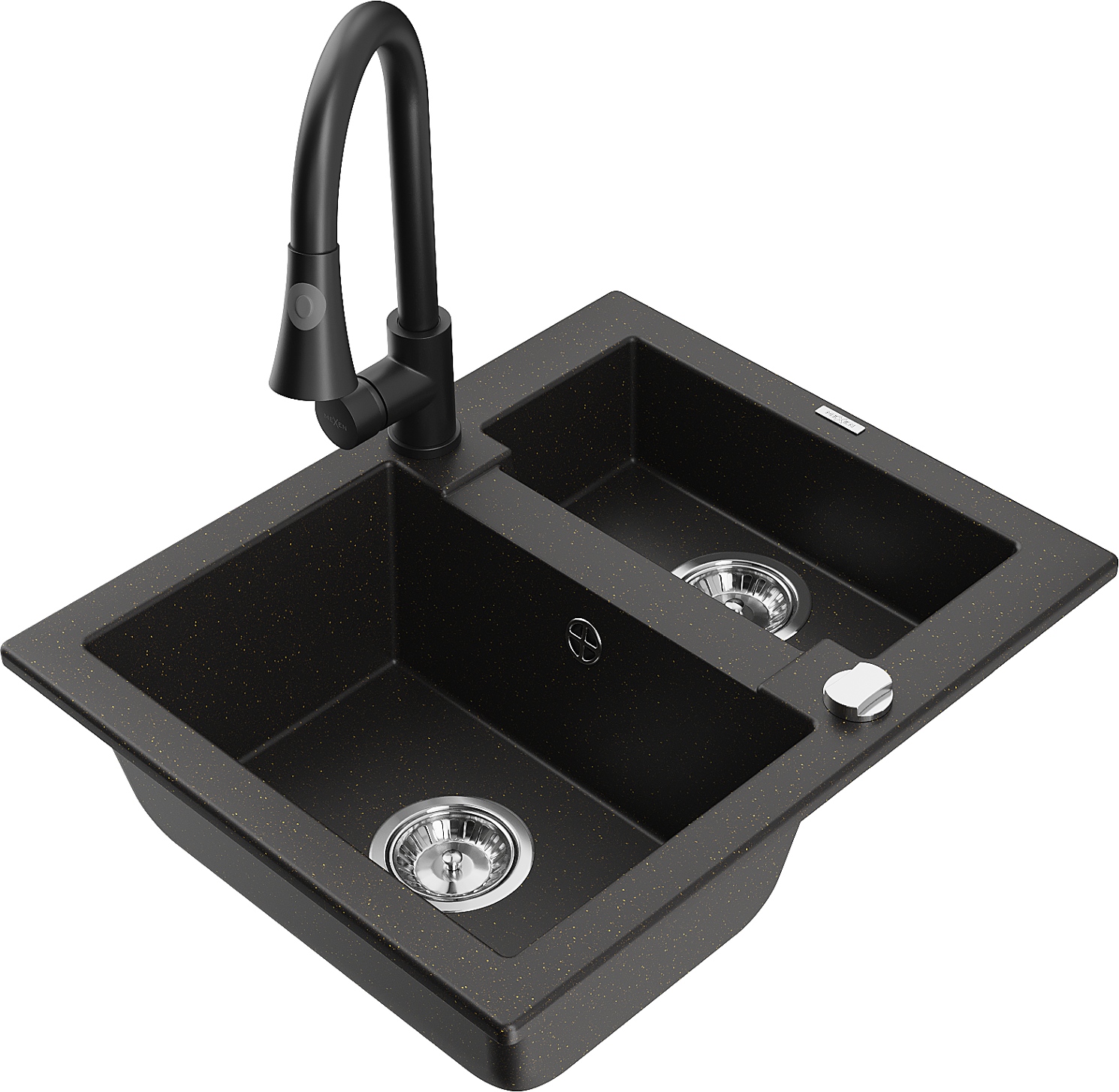Mexen Carlos évier en granit 1,5 bac avec mitigeur de cuisine Elia, noir/doré métallisé - 6518-75-670101-70