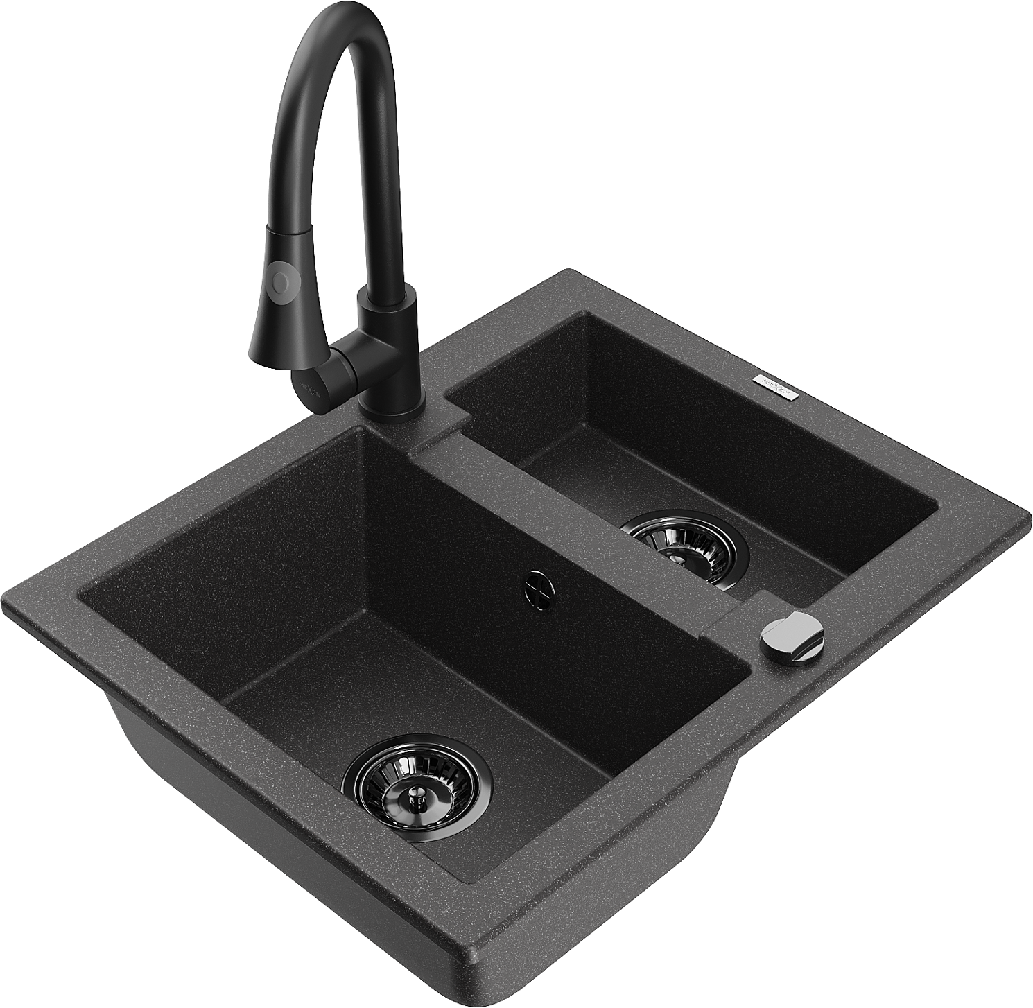 Mexen Carlos évier en granit 1,5-bac avec robinet de cuisine Elia, noir moucheté - 6518-76-670101-70-B