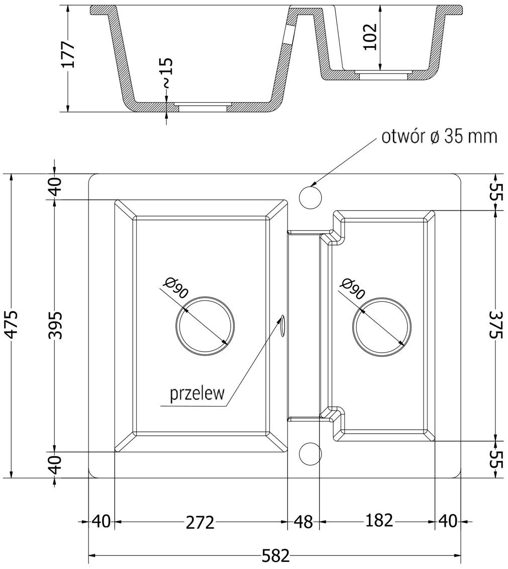 La surface de l'évier est très bien durcie, elle se distingue par une résistance exceptionnelle aux dommages mécaniques et aux rayures. Le matériau durable de fabrication permet de profiter de l'apparence de l'évier pendant de nombreuses années d'utilisation.