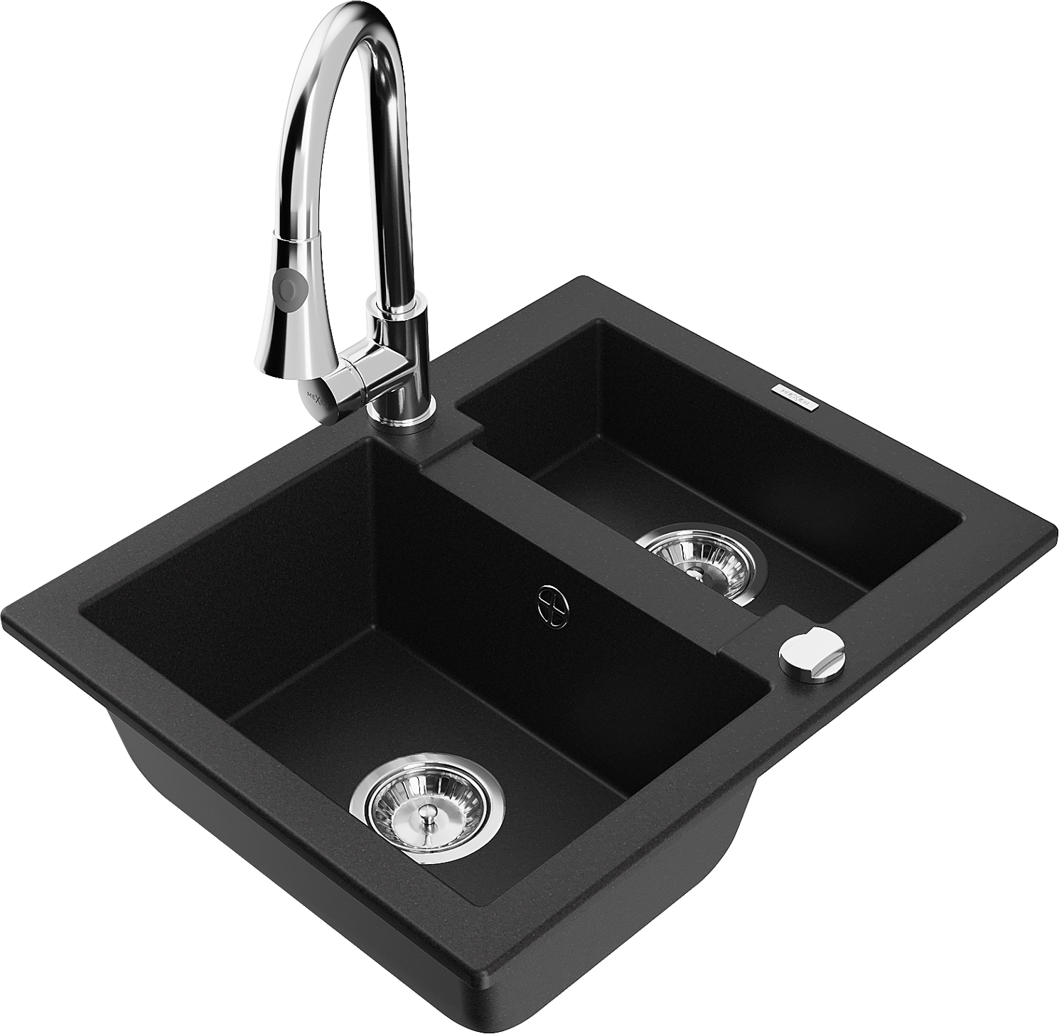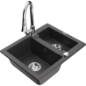 Mexen Carlos évier en granit 1,5 bac avec robinet de cuisine Elia, noir - 6518-77-670101-00