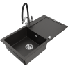 Mexen Leo évier en granit 1 bac avec égouttoir et robinet de cuisine Duo, gris - 6501-71-671701-07