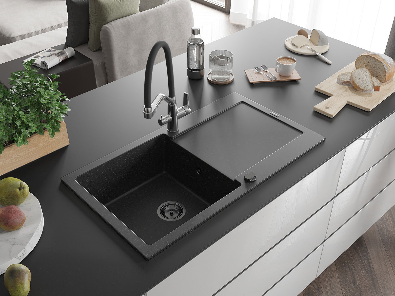 L'évier a été fabriqué en granit de haute qualité. Il constitue un complément élégant et surtout pratique à toute cuisine, quel que soit son style. La haute qualité et la durabilité du granit garantissent une utilisation pendant de nombreuses années.