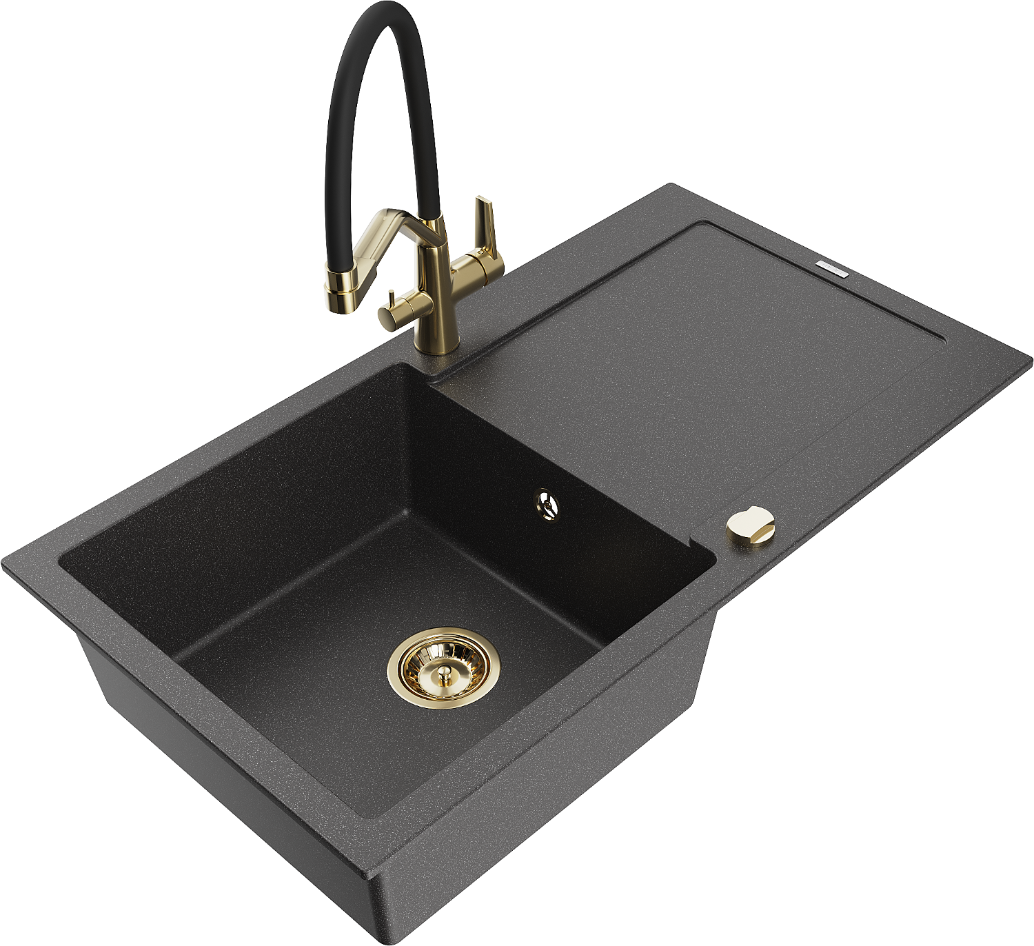Mexen Leo évier en granit 1 bac avec égouttoir et robinet de cuisine Duo, noir moucheté - 6501-76-671701-57-G