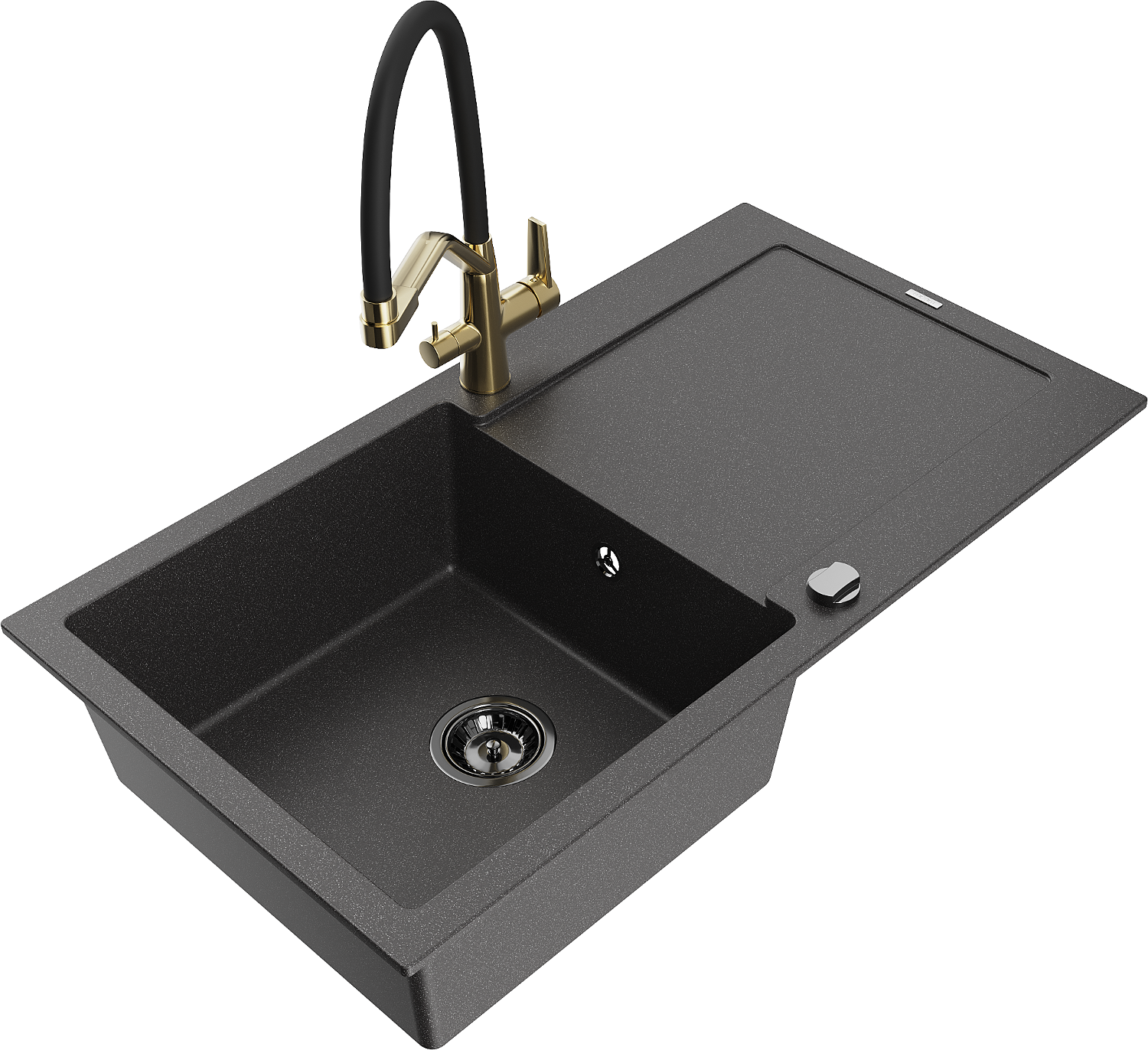 Mexen Leo évier en granit 1 bac avec égouttoir et robinet de cuisine Duo, noir moucheté - 6501-76-671701-57-B