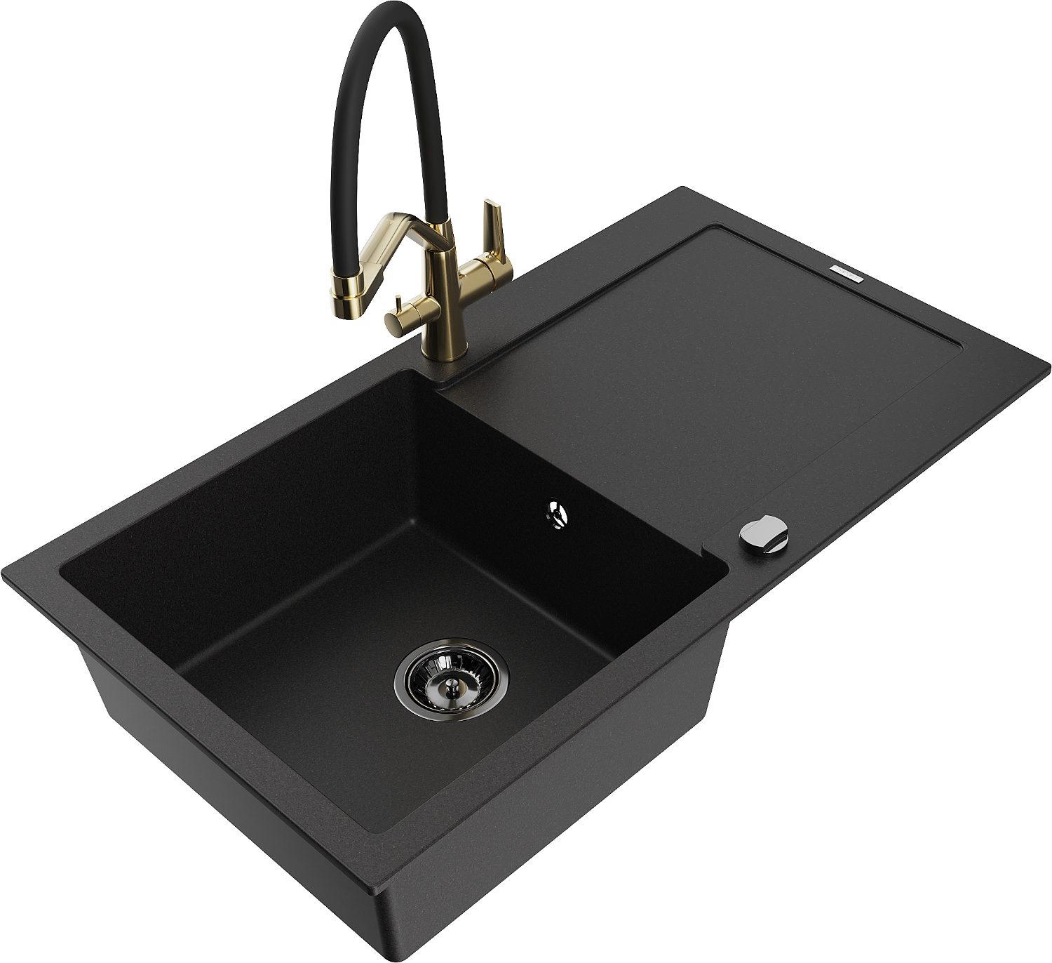 Mexen Leo évier en granit 1 bac avec égouttoir et robinet de cuisine Duo, noir - 6501-77-671701-57-B